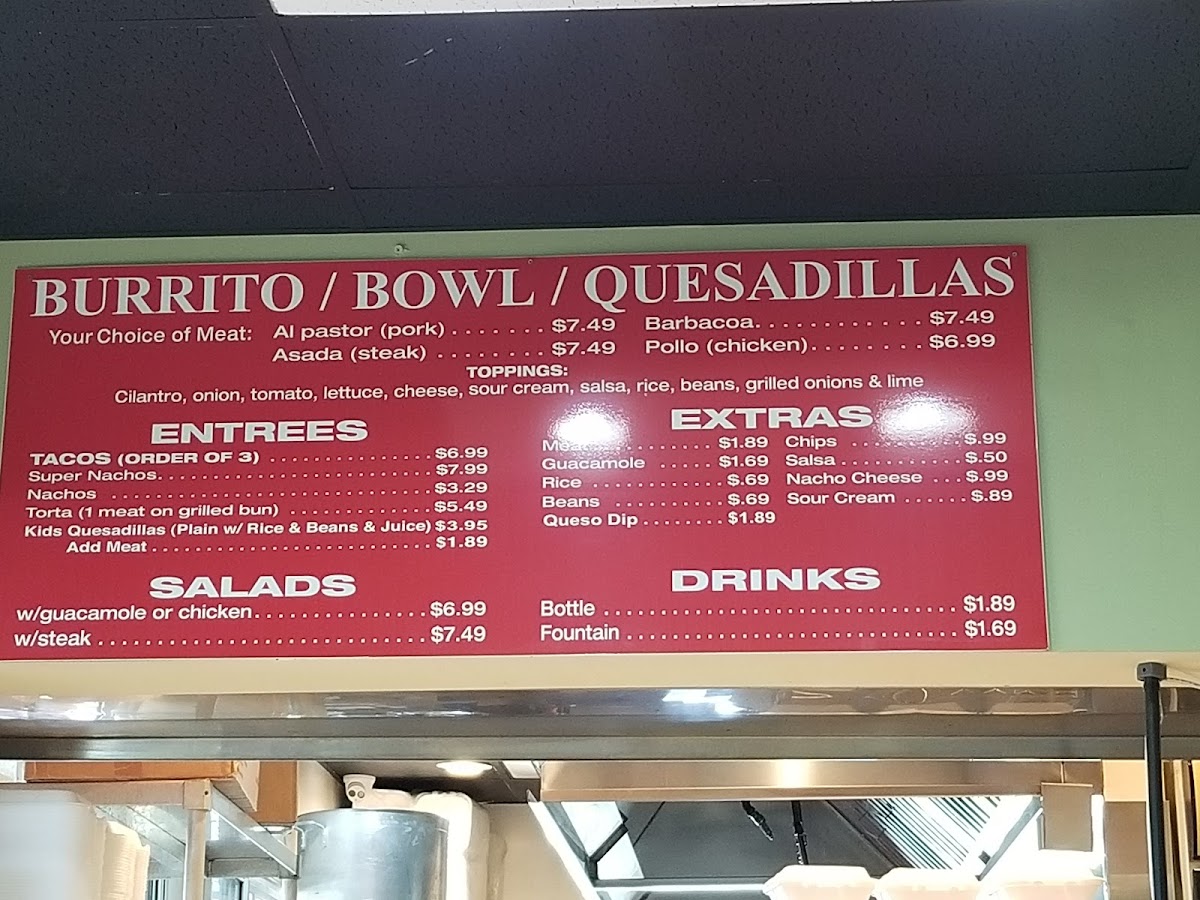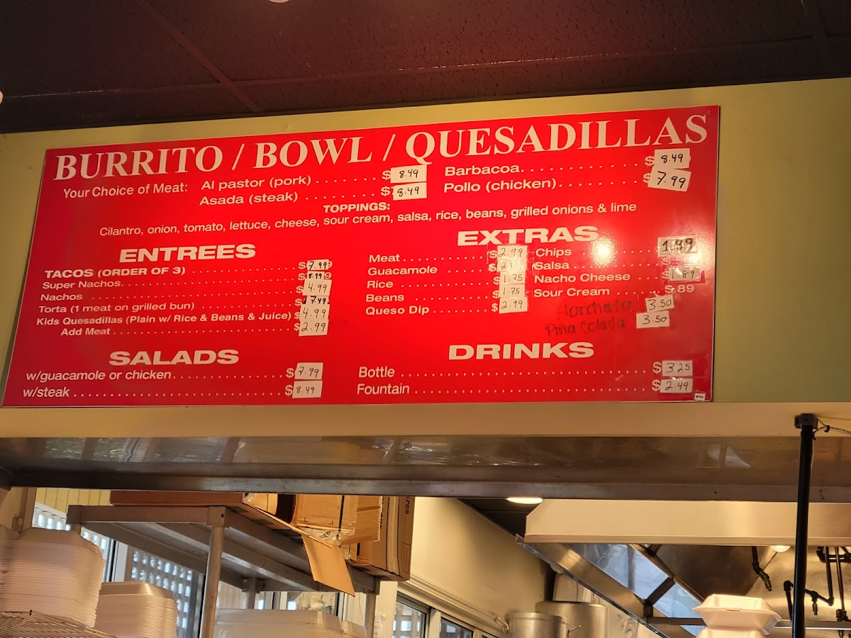 Choose a meat: Al Pastor (Pork), Asada (Steak), Barbacoa, Pollo (Chicken)