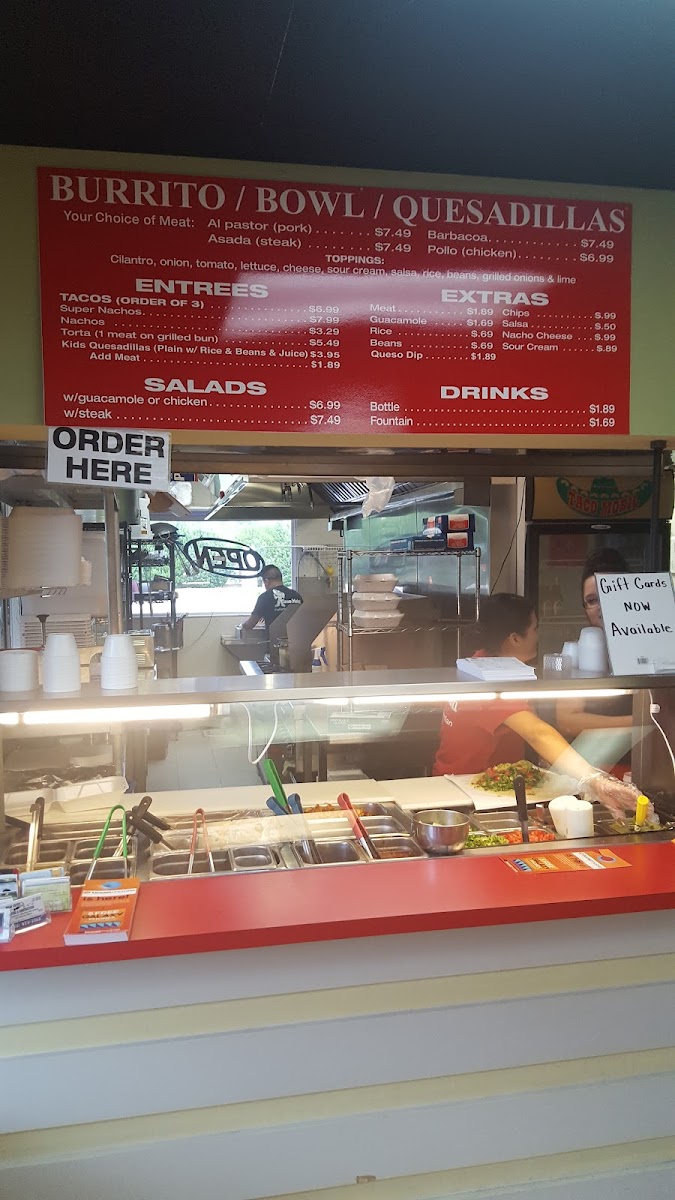 Welcome to Taco Mobil, a hidden gem located in Sebastian, Florida, at 825 Sebastian Blvd. Here, you will discover an array of flavor-packed offerings that are hard to resist. The menu showcases an enticing selection of burritos, tacos, and bowls, with filling options like chicken, asada steak, barbacoa, and pork. Each dish is generously adorned with vibrant toppings, including fresh tomatoes, onions, and your choice of spicy sauces.